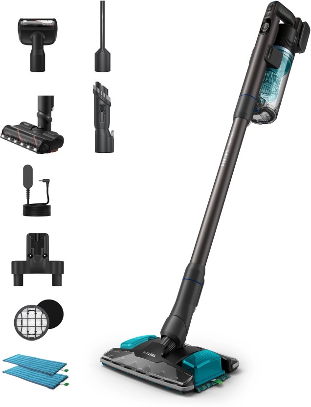 - Liczne akcesoria z podświetleniem LED ułatwiające dokładne sprzątanie.